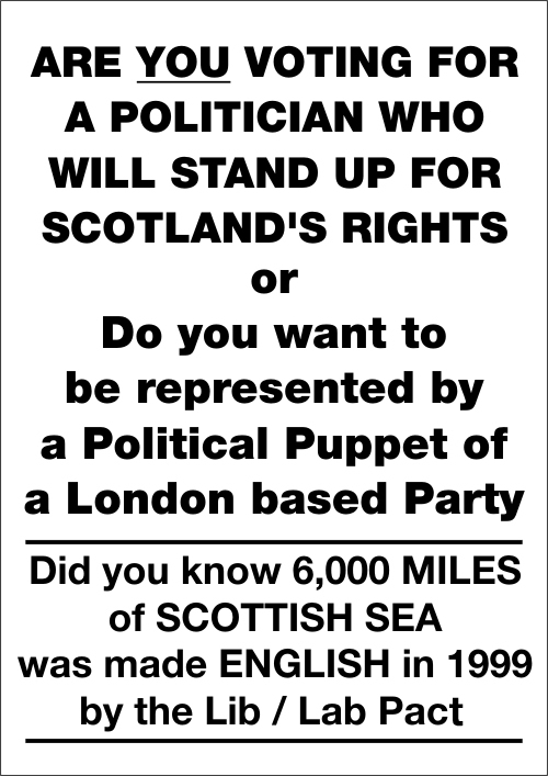 In 1999 Labour and Liberal Democrats secretly made 6,000 MILES of SCOTLAND'S SEA - ENGLISH by moving Scotland's marine boundaries from Berwick-up-on-Tweed to Carnoustie.